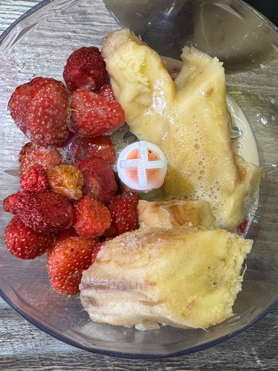 Доброго утра! Вот и обещанный рецепт мороженого 🤗 На самом деле все предельно просто: Несколько советов: Предварительно лучше очистить банан, по желанию разрезать на несколько кусков и морозить в пакете для замораживания. Если сразу не заморозили банан очищенным, то до приготовления мороженого лучше минут за 10 достать из морозилки, чтобы получилось очистить и разрезать банан. Лучше готовить порцию на один раз. Повторная заморозка и разморозка уже будут выглядеть просто как фруктовое пюре. Приятного аппетита! Клубника, банан, безлактозное мороженое, простые рецепты, рецепты без сахара, рецепт на скорую руку