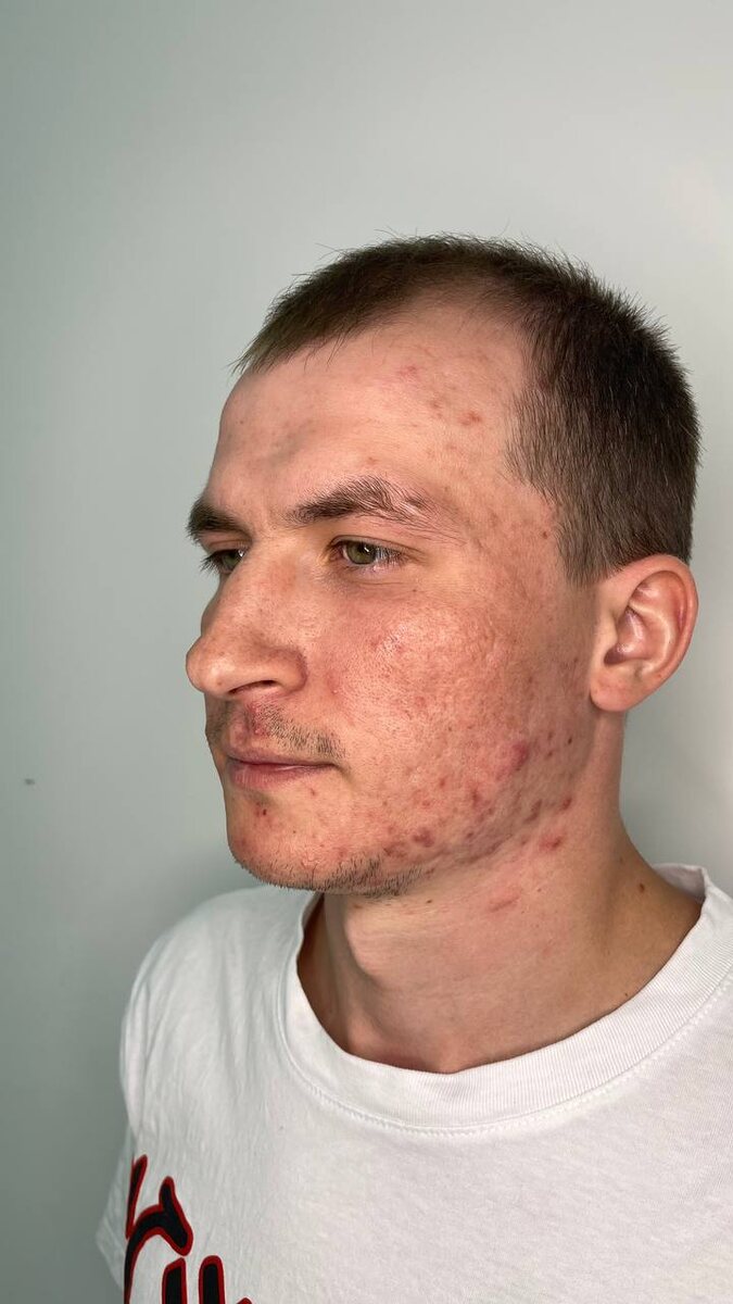 (Угри 3-4ст. Папуло-пустулезная форма со склонностью к абсцедированию и рубцеванию)🌋 Молодой человек после сильного стресса, связанного с тяжелыми жизнеугрожающими обстоятельствами и проживания в другой стране стал предъявлять жалобы на болезненны высыпания, уродующие его внешность. Было принято решение о лечении системной терапией (Антибиотики + сис. Изотретиноин) Фото представлены ДО лечения и В ПРОЦЕССЕ, спустя 1,5 мес И вот такое ПОСЛЕ (4 мес лечения) мы имеем🙌🏻🥳 Поздравляем нашего пациента с достижением качественного клинического результата, желаем крепкого терпения и дисциплины для прохождения дальнейшей терапии, которая приведет к стойкой ремиссии🙏🏻