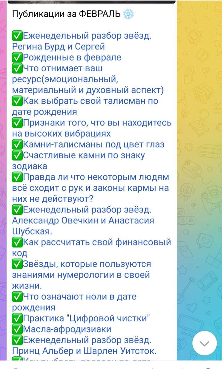Как вы заметили, давно здесь не выходило моих публикаций, но это не значит, что я не продолжаю писать о нумерологических знаниях, духовных матрицах, жизненных графиках судьбы и духовном развитии. Всё это я публикую на моем телеграм-канале, Передаю важные знания. Каждый день на канале публикую Лунный календарь и календарь стрижек. Вы знали, что от того, в какой Лунный день начали дело, будет зависеть его успех? Кроме этого, по воскресеньям еженедельный разбор известных личностей. Каждый день полезные публикации для того, чтоб расти духовно. Только так можно прийти к положительному течению энергий в своей жизни. Приходите, вы здесь уже не случайно. https://t.me/kattrinum