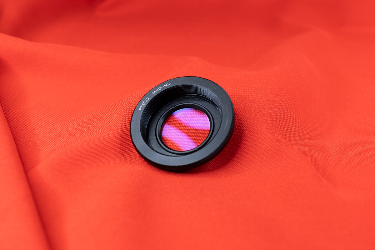 м42 - 45,5 мм Nikon F - 46,5 мм Canon EF - 44 мм Sony A - 44,5 мм Если объектив спроектирован под систему с рабочим отрезком больше чем та система, на которую он будет установлен - расстояние компенсируется переходником, например: Canon EF (44 мм) + переходник м42/EF (1,5 мм) = 45,5 мм, ровно рабочий отрезок объективов м42. Фотоаппараты Никон F имеют рабочий отрезок в своей системе больший, чем большинство остальных систем - целых 46,5 миллиметра, это порядочно больше чем у м42 - на миллиметр + переходник. В этом случае переходник начинает работать как макро-кольцо: фокус на бесконечность пропадает, МД