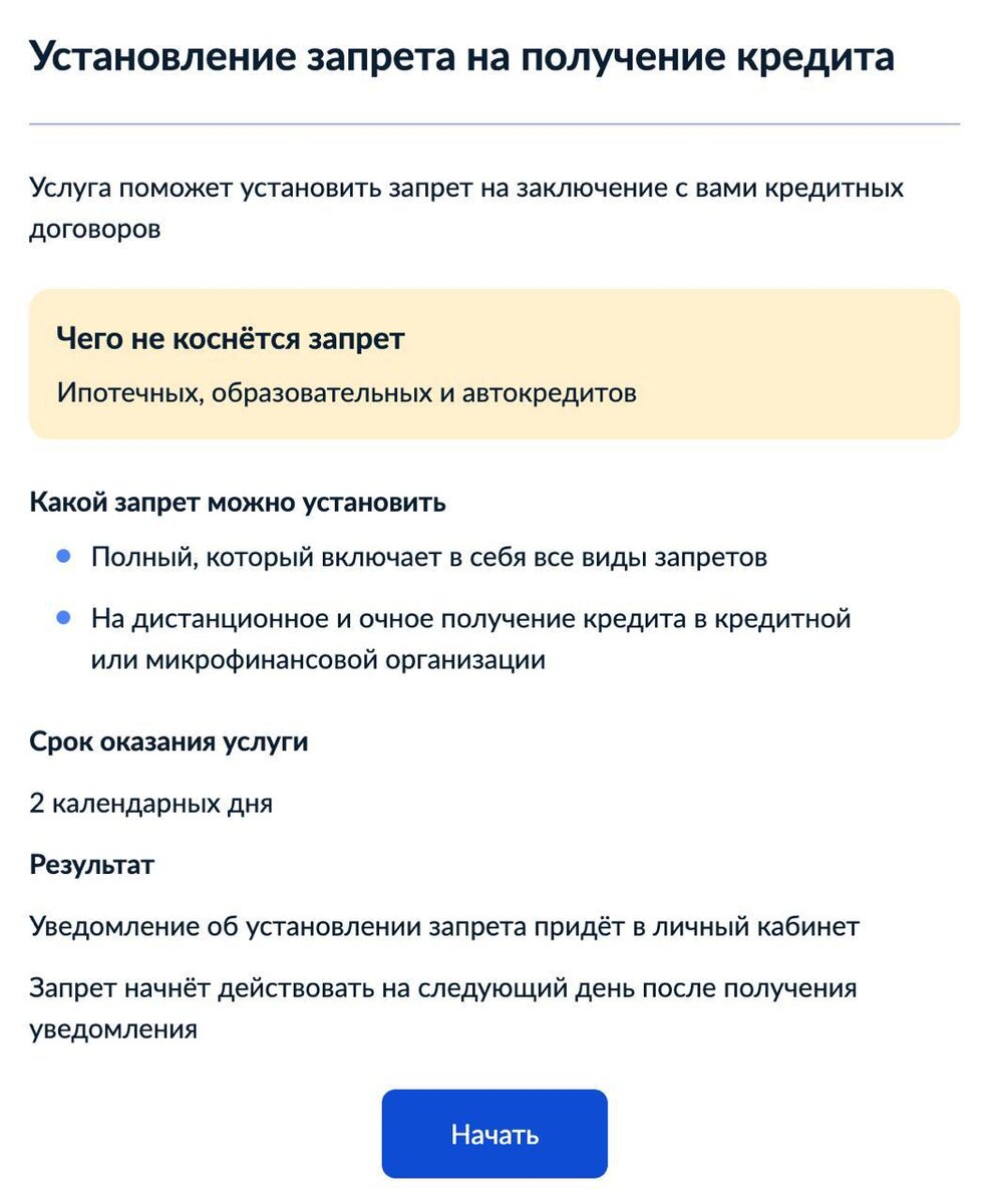 Срок действия запрета. Обычно запрет действует до тех пор, пока вы сами его не отмените. Для снятия ограничения также потребуется подать соответствующее заявление через "Госуслуги".