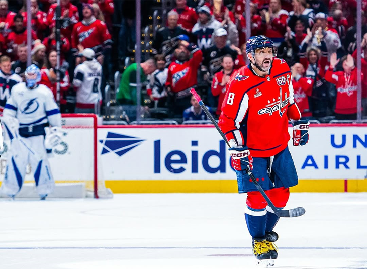 Хотя «Вашингтону» это не помогло. Ранние матчи «Кэпиталс» постепенно входят в привычку: игра с «Тампой» – уже четвертая подряд, начинающаяся в выходные раньше трех часов дня по местному времени. Причем три из них вообще стартовали в 12:30 – 13:00. Удобно для болельщиков – и вашингтонских, и московских. Но сложно сказать, насколько это удобно для самих игроков. По факту: 2 победы, поражение в серии буллитов, а сегодня – еще и поражение в основное время. Единственный позитивный момент – очередная шайба Овечкина. Гол №884: оказался в нужном месте в нужное время Возможно, это не самый яркий матч в исполнении Александра – но ему и не надо выжигать всю площадку 3х20; достаточно просто реализовать свои моменты. У ворот «Тампы» их было не так много, но одного он все-таки дождался. За 4 минуты до конца основного времени, когда Карбери уже задумывался о снятии вратаря, «Кэпиталс» устроили в чужой зоне позиционную, хоть и довольно сумбурную атаку. В итоге на позицию с броском должен был выходить