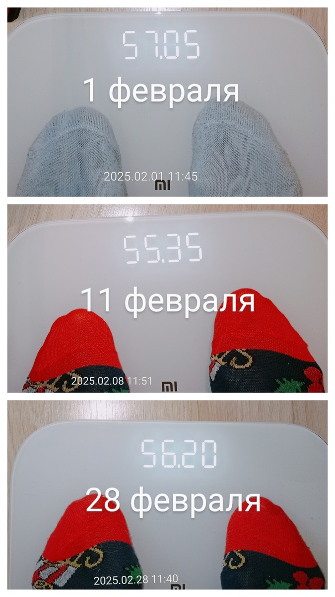 Всем привет! С Вами Татьяна, пенсионерка. Мне 73 года, рост 151 см, вес 56.2 кг. ✅ 27.02.23 мой вес был 82 кг, сбросила 25 кг. Цель - нормальный вес 53-54 кг для роста 151 см. Изменения веса в течение месяца 👇 Изменения веса за 2023-25 годы 👇 Изменения средней суточной калорийности по месяцам за 2025 год. 👇 Изменения объёмов фигуры👇 Вес стоит и объёмы без изменений. *** *** Отчитываюсь за прошедший февраль. У меня вторая годовщина, так как именно в феврале 2023 года начался мой процесс похудения. Два года, как один день: заснула феврале 2023 года в 82 кг, проснулась в феврале 2025 года в 56,2 кг. Чудеса! Долгое время я была полной, но не обращала на это внимание. Думала, что с возрастом все полнеют, страдают гипертонией и одышкой, терпят боли в коленных суставах. Все это от возраста, только от возраста, а не от ожирения, считала я. Всё изменилось в один февральский день, а именно 27 февраля 2023 года, когда я встала на весы и увидела огромную для мо