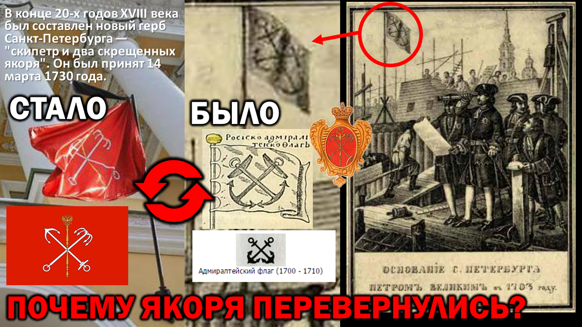 На гербе Санкт-Петербурга принятом в 1730 году были использованы эти же якоря, но уже в перевернутом виде.