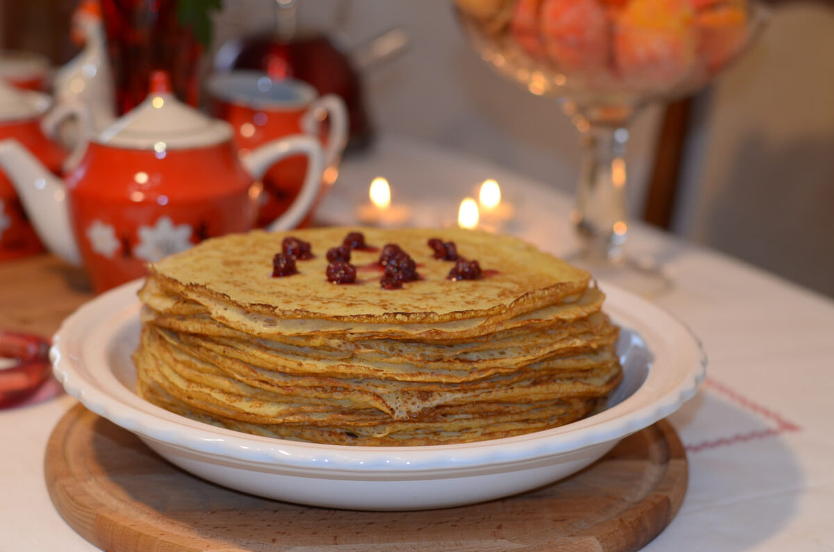 Доброго всем дня! Всю неделю я любовалась накрытыми столами на Масленицу, прекрасными кулинарными творениями. И вот настал мой черед. Рабочая неделя позади. В предпоследний день масляничной недели я накрыла стол. Главное блюдо блины. Мамин рецепт, все на глаз. Конкретных пропорций нет, тут работает интуиция, гены, опыт поколений. Праздник яркий, веселый. Зима позади. И чайный сервиз ему под стать. Октябрьский фарфоровый завод родом из Башкирии, 1970-е годы. Эти чудесные салфетки сшила мне коллега. У меня на работе, мои коллеги, две подруги, увлекаются шитьем и самоотверженно помогают мне. Чайные ложки Кольчугинский завод, подарок мамы. Петушок, Барановка 1960 годы. Из семьи мужа, семейная реликвия. Розетки с малиновым вареньем. Такие были почти в каждом доме. Чайник вполне современный, но стоит на подствке под горячее из СССР. В фруктовнице выпечка из детства. "Орешки" со сгущенкой и сдобное печенье "Персики". Вазочка из гутного стекла с веточкой хризантемы, цветы, которой перекликаю
