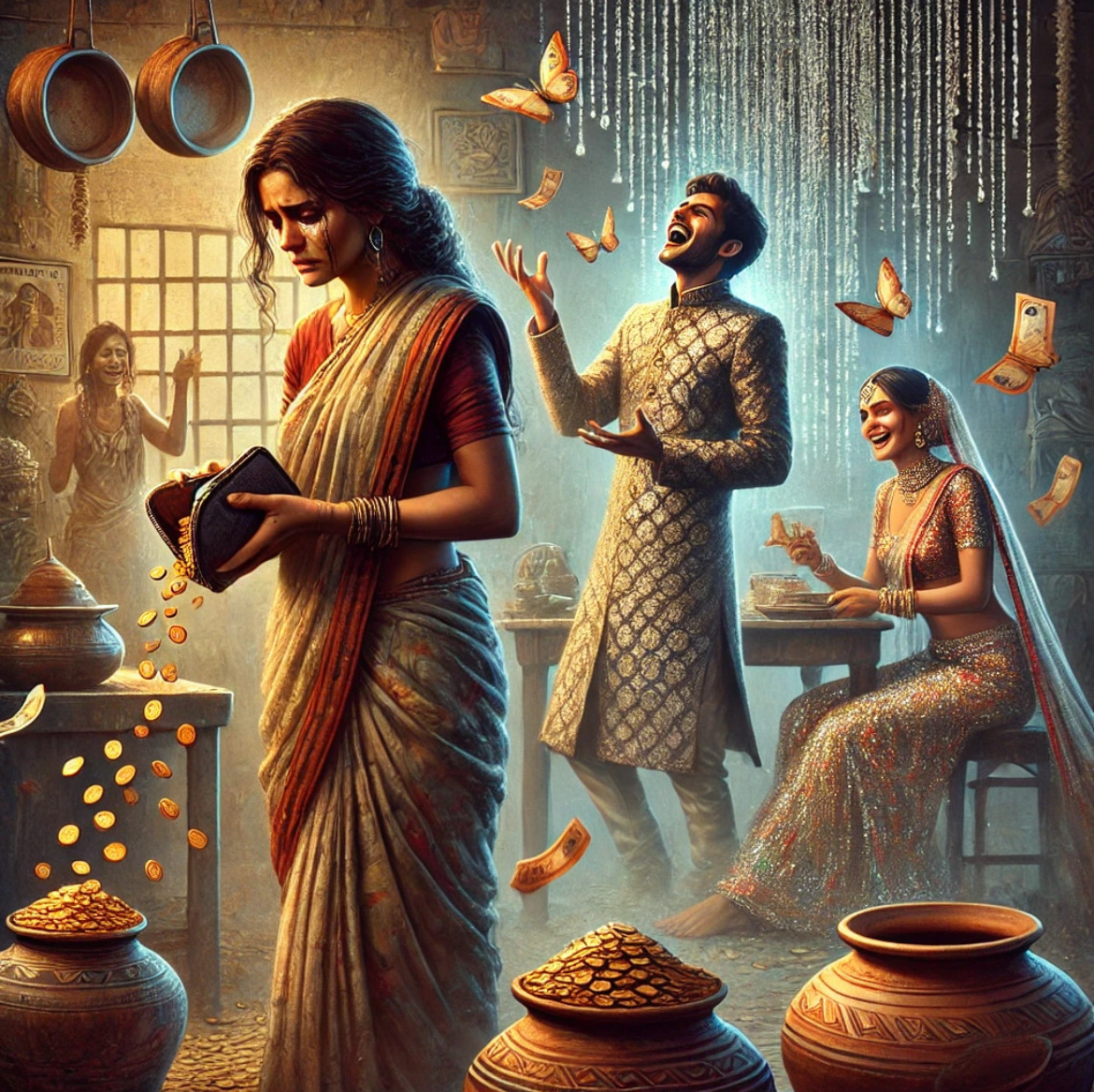 Родителям Раджеша доставались крохи: оплата света, лекарства, иногда — пакет специй. А остальное? Всё текло к Приянке. Безработная, но живёт, как махарани с золотыми браслетами!