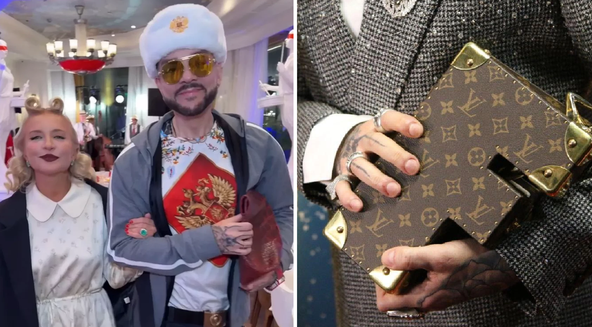 Однако даже не сумка Киркорова в этот раз вызывала самые бурные обсуждения в сети. Куда больше пользователей заинтересовал внешний вид исполнителя хита «Единственная моя». На днях народный артист РФ пришел на десятилетие одного известного московского ресторана в компании светской львицы Виктории Шеляговой. Оделся Бедросович, как всегда, «со вкусом». Под спортивной курткой серого цвета с гербом СССР на спине красовалась футболка с гербом России, правда, почему-то перекошенным на бок, на голове была белоснежная шапка-ушанка, опять-таки с российским гербом, джинсы, подпоясанные армейским ремнем, а на ногах — черевички, украшенные серпом и молотом.