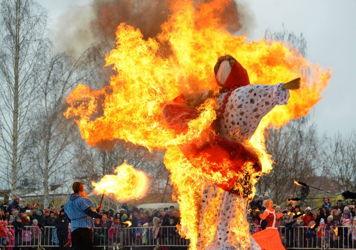 Сжигание чучела на Масленицу — это символичный обряд, который олицетворяет прощание с зимой и встречу весны, обновление природы и начало нового жизненного цикла. Считалось, что этот обряд не только прощается с зимой, но и помогает пробудить землю, прогнать злых духов и обеспечить будущий урожай. В некоторых культурах чучело воспринималось как жертвоприношение богам или духам плодородия, чтобы задобрить их и обеспечить удачу в новом сезоне. Люди верили, что с дымом чучела в небо уходит всё плохое — болезни, беды, неурядицы, накопившиеся за зиму. Оставшийся пепел развеивали по полям, чтобы получить хороший урожай и точно провести все беды и напасти прошлого.