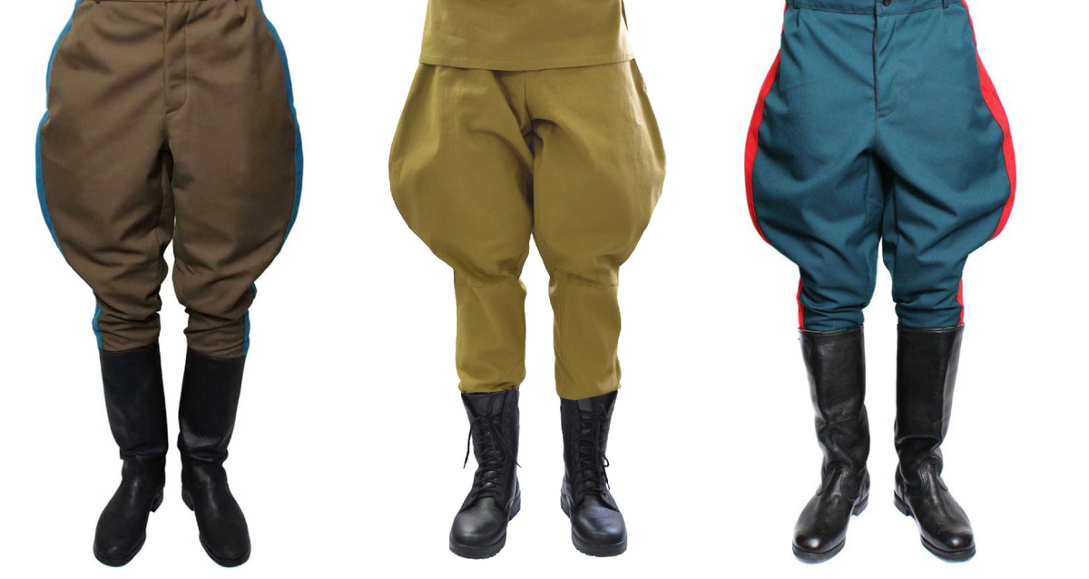 Откуда взялись брюки галифе? Казалось бы, очень неудобная и даже смешная форма: расширенные в области паха и бедер, но сильно зауженные от колен и ниже. Однако за 30 лет с момента их появления галифе распространились практически во всех европейских армиях. Сначала в кавалерии, затем и в пехоте. В Красной Армии галифе стали частью обмундирования командиров (с 1943 года — офицеров) различных родов войск: пехоты, артиллерии, военно-воздушных сил и НКВД. Со временем они стали менее широкими по сравнению с первоначальной моделью конца XIX века, однако переход от расширенной части к зауженной стал более выраженным. По легенде галифе изобрел французский генерал от кавалерии Гастон Александр Огюст де Галифе. Во время франко-прусской войны 1870-1871 годов генерал получил тяжелое ранение в бедро. Чтобы скрыть увечье, которое сразу бросалось в глаза в лосинах, генерал и придумал брюки с расширенной верхней частью. В другой версии он просто стеснялся своих кривых «кавалерийских» ног. На с