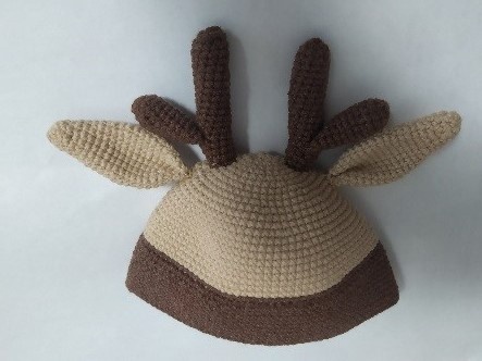 Прошу прощения за качество фотографий, это все, что нашлось на момент публикации))) Шапочка «Олененок» Шапочка вяжется крючком по принципу игрушек амигуруми. Начинаем вязать светлой пряжей. 1 ряд: 6 сбн. в КА (или набираем 2 в.п. и во вторйю петлю от крючка провязываем 6 сбн.) 2 ряд: 6 пр. (12 ст) 3 ряд: (1 сбн., пр .)* 6раз (18 ст) 4 ряд: (2 ст., пр)*6 раз (24 ст) 5 ряд: (3 ст., пр)*6 раз (30 ст) 6 ряд: (4 ст., пр)*6 раз (36 ст) 7 ряд: (5 ст., пр)*6 раз (42 ст) 8 ряд: (6 ст., пр)*6 раз (48 ст) 9 ряд: (7 ст., пр)*6 раз (54 ст) 10 ряд: (8 ст., пр)*6 раз (60 ст) 11 ряд: (9 ст., пр)*6 раз (66 ст) 12 ряд: 66 сбн. 13 ряд: (10 ст., пр)*6 раз (72 ст) 14 ряд: (11 ст., пр)*6 раз (78 ст) 15 ряд: 78 сбн. 16 ряд: (12 ст., пр)*6 раз (84 ст) 17 -18 ряд: 84 сбн. 19 ряд: (13 ст., пр)*6 раз (90 ст) 20-21 ряд: 90 сбн 22 ряд: (14 ст., пр)*6 раз (96 ст) 23 ряд: 96 сбн сменить нить на темную 24 ряд: 96 сбн. 25-32 ряд: 96 сбн. Шапочку примеряйте на голову кукле, может вам нужно больше рядов или меньше петел