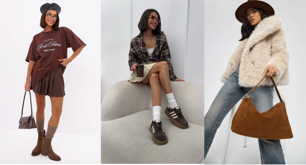 Создайте смелый и стильный образ с мини-юбкой в складку, которая придаст вам игривости и легкости. Коричневая футболка оверсайз добавит удобства и расслабленности вашему наряду. Замшевые коричневые казаки внесут нотку дерзости и элегантности, в то время как коричневая сумка-багет станет практичным акцентом. Завершите свой образ бело-серой косухой, которая добавит контраст и динамику, идеально подходя для уверенных и модных выходов!