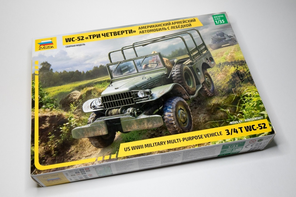Друзья, предлагаю вашему вниманию обзор сборной модели американского армейского внедорожника времен Второй мировой войны Dodge WC-52 от компании Звезда в масштабе 1/35 (арт. 3664). WC расшифровывается как Weapons Carrier - носитель оружия. Машина отличались простотой конструкции, технологичностью в производстве и высокой степенью унификации. Созданное на базе WC семейство автомобилей включало пикапы, машины скорой помощи, разведывательные машины, передвижные мастерские и командные машины. Интересность прототипа