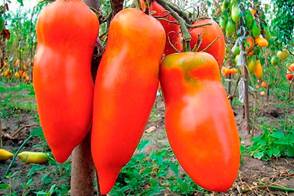 - Помидоры средних размеров, около 95 г, но могут достигать и 200 г. У них вытянутая цилиндрическая конфигурация с характерным сужением в верхней части и острым кончиком – напоминают увесистые перцы.