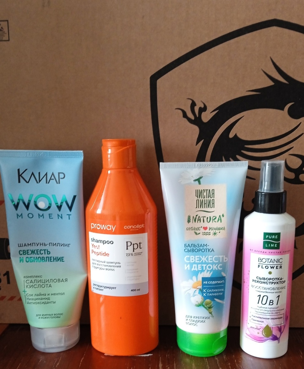 1 Клиар шампунь-пилинг 2 Concept пептидный шампунь 3 Чистая Линия бальзам-сыворотка. Имеет сильную отдушку.Волосы распутывает средне делает их мягче. 4 Pure Line сыворотка-реконструктор. Чистая Линия крем-гель для умывания Stopproblem салициловый лосьон осветляющий. Лучше чем предыдущий помогает от прыщей. Черный Жемчуг сыворотка-бустер Пептиды Черный Жемчуг крем для лица Чистая Линия крем для век 55+ Мое солнышко бальзам для губ