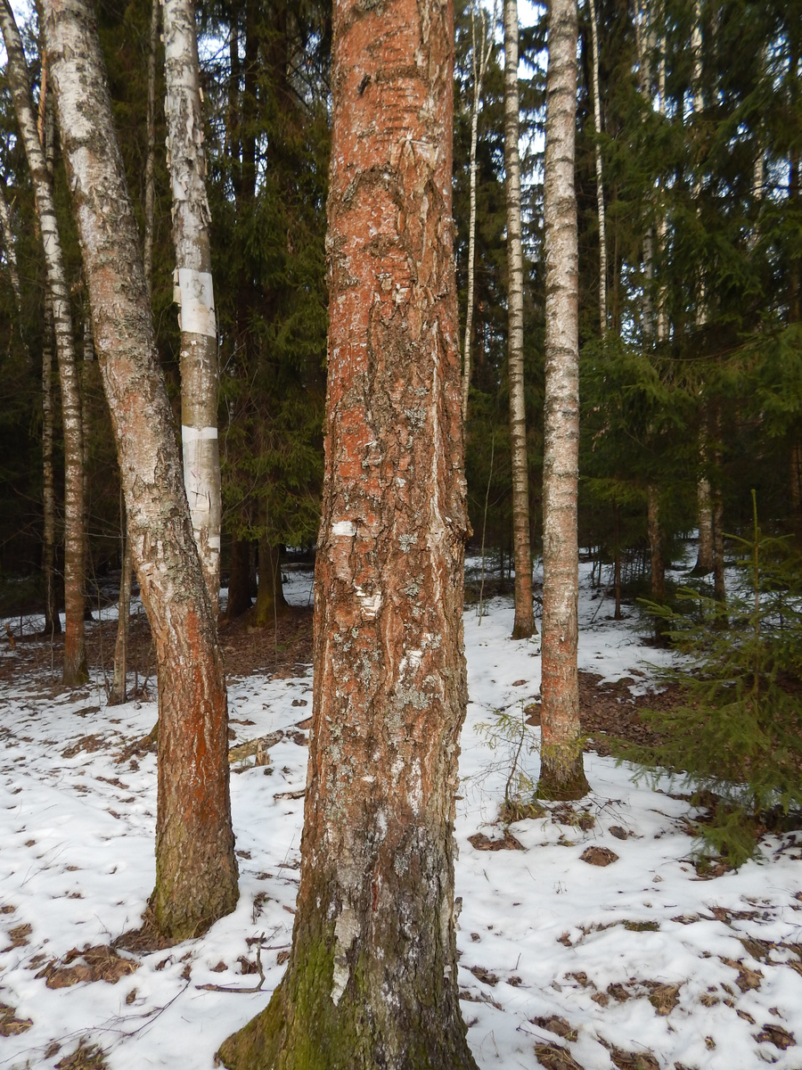 Как известно, я приболел. Я скоро поправлюсь, я уверен. Но пока я не поехал в Москву ни на одно из двух мероприятий, куда меня звали, не пошёл плести маскировочные сети, а вместо этого медленным темпом прогуливался по лесу, снимал мелкие обнаруженные детали, потом спал, очень много спал. Сон лечит болезни. Я сделал немного фотографий с обеих прогулок. Начну со вчерашней прогулки. Первым делом я отправился к небольшому березняку близ заброшенной просеки ЛЭП в лесу. У нас в пятницу, я всё же на работу через "не могу" ходил, так как работаю один, а в обед хожу к коллеге, который сам только переболел и не заразится от меня, был с коллегой разговор о том, как меняется мир. Я сказал, что придёт время, когда белые берёзы внесут в красную книгу. Их просто скоро не станет, поскольку повсюду кора берёз становится повсюду розоватой. Мой коллега удивился, сказал, что не замечал ничего подобного. Надо сказать, я подобную аномалию видел ещё где-то 5 или более лет назад, когда шлындал по тогда ещё п