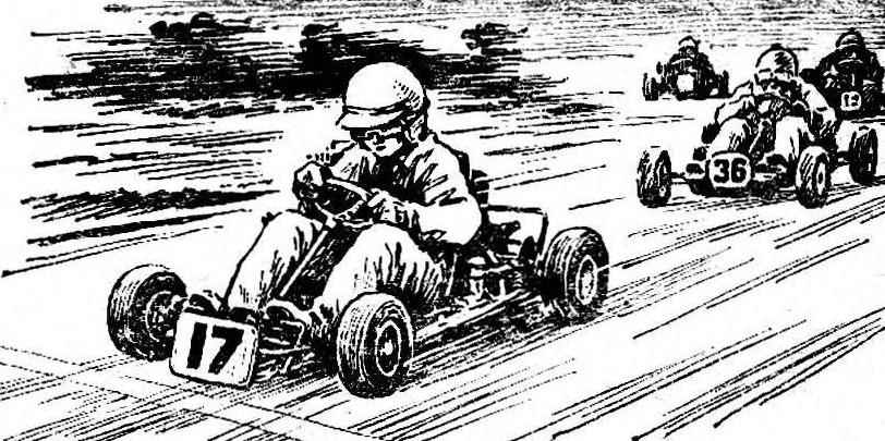 Карт класса «Пионер» — самый маленький из спортивных гоночных автомобилей. Рабочий объем его двигателя всего 50 см3. Такие карты строят для гонок, в которых участвуют ребята в возрасте от 9 до 16 лет. К сожалению, промышленность эти машины пока не выпускает, и они создаются в секциях и кружках.