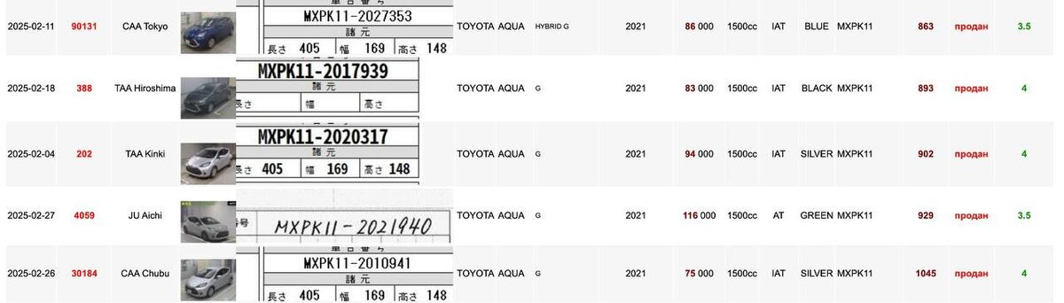 Япония ввела разные санкции, в том числе на полноценные гибриды, к таким относятся приусовидные тойоты. Те, кто был во Владивостоке, наверняка замечали сверхпопулярную машинку - Toyota Aqua, она чуть меньше приуса, небольшой пятиместный хетчбек. В большей массе машинка используется в доставках или такси, чуть реже - частными лицами, которые знают толк в экономии. А некоторые таксисты даже умудряются ставить на нее газ . 😃 А расход у нее заявлен 3 л/100 км. Если в кратце по основным данным: Резина 185/65/15, клиренс 140мм у переднего привода и 150мм у 4wd. Объем топливного бака- 36 л Это параллельный гибрид, батарея у нее 50кВт, двигатель 1.5 литраим(91 л.с или 59кВт). На полностью заряженной батарее, авто может проехать до 30км. Леворукая модель в Европе называется - Prius C. Ну и во сколько же обойдется такое авто? Проходная модель 2021 года в хорошем состоянии начинается от 1.200.000 рублей и до 1.350.000 рублей. Вот например такое авто обошлось бы в 1.150.000 рублей. У него была