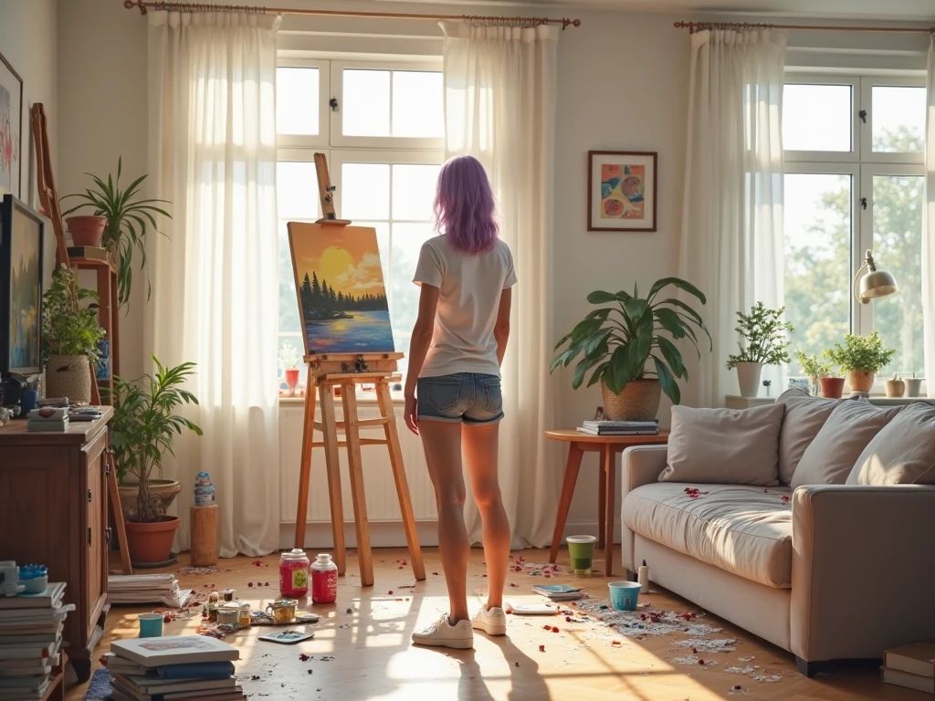 Гостиная стала первым полем боя. Анна мечтала о тихом уголке с книгой, а Мария превратила диван в склад холстов и красок. Однажды Анна вернулась с работы и замерла: её любимый диван утопал под грудой творческого мусора.