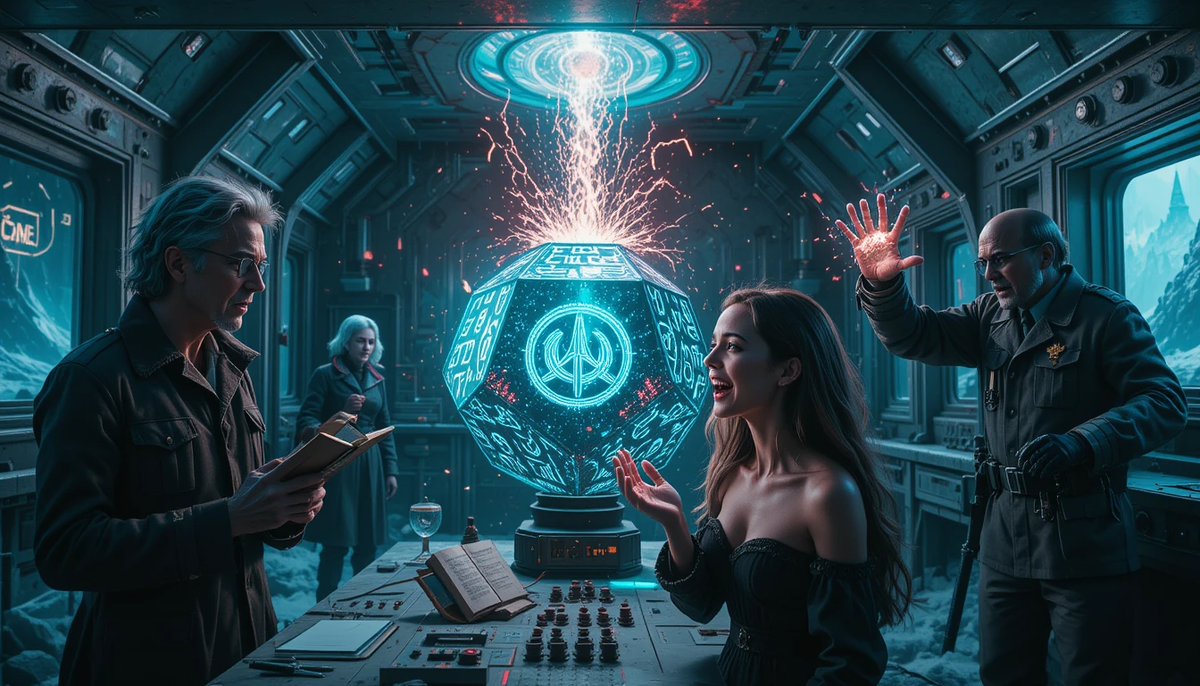 На краю бескрайних ледяных пустынь Антарктиды, в зоне, отмеченной на картах кровавым штампом «Зона 17», экспедиция климатологов обнаружила нечто, что не должно было существовать. Под слоем векового льда, словно насмешка над законами физики, скрывался люк из черненого металла. Его вскрыли — и попали в лабиринт. Стены коридоров были покрыты барельефами с символами, будто выжженными плазмой. Одни напоминали шумерскую клинопись, другие — криптограммы инопланетных цивилизаций. Но главная находка ждала в сердце комплекса: пять криогенных капсул. Внутри — люди в советской форме 1950-х. Их кожа была бледной, как лунный свет, а на груди каждого мерцал знак в форме додекаэдра. Они дышали. Когда капсулы открыли, доктор Волков (его глаза, словно два осколка антарктического льда, светились синим) заговорил первым. Голос звучал так, будто скрипели шестерни древнего механизма: