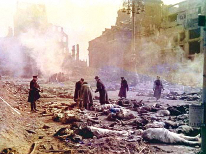 В немецком городе Дрезден есть панорама его бомбардировки в феврале 1945 года. Очень сильное впечатление производит 360-градусная панорама с изображениями 15-метровой высоты того, во что превратили город англо-американские ВВС. Общая площадь изображения руин составляет более 3000 кв. м., но показывает только малую часть того во что превратился Дрезден после бомбардировки — площадь его разрушения в четыре раза превышает площадь поражения японского Нагасаки после ядерной бомбардировки, а количество жертв почти в два раза превысило погибших в Хиросиме. Бомбардировка Дрездена — самое кровавое военное преступление как минимум в Европе, превзошел ее только американский авианалет на Токио, хотя цифры погибших в обоих случаях близки и точно их установить не удалось до сих пор. В Германии грустно шутят, что во время войны эсэсовцы сжигали вместе с жителями села, а английские и американские летчики — города. Хотя первыми массированную бо