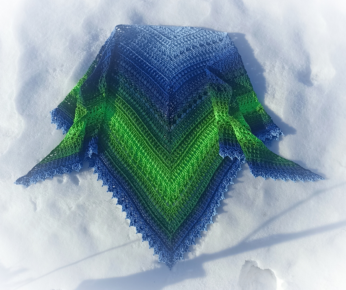 Шаль "Зимний сад". Автор Светлана @SVG вязание спицами и крючком. Размер шали 2,25 х 1,10 Пряжа ЯрнАрт Фловерс колор 306 Крючок 3,5 расход пряжи: 490 г