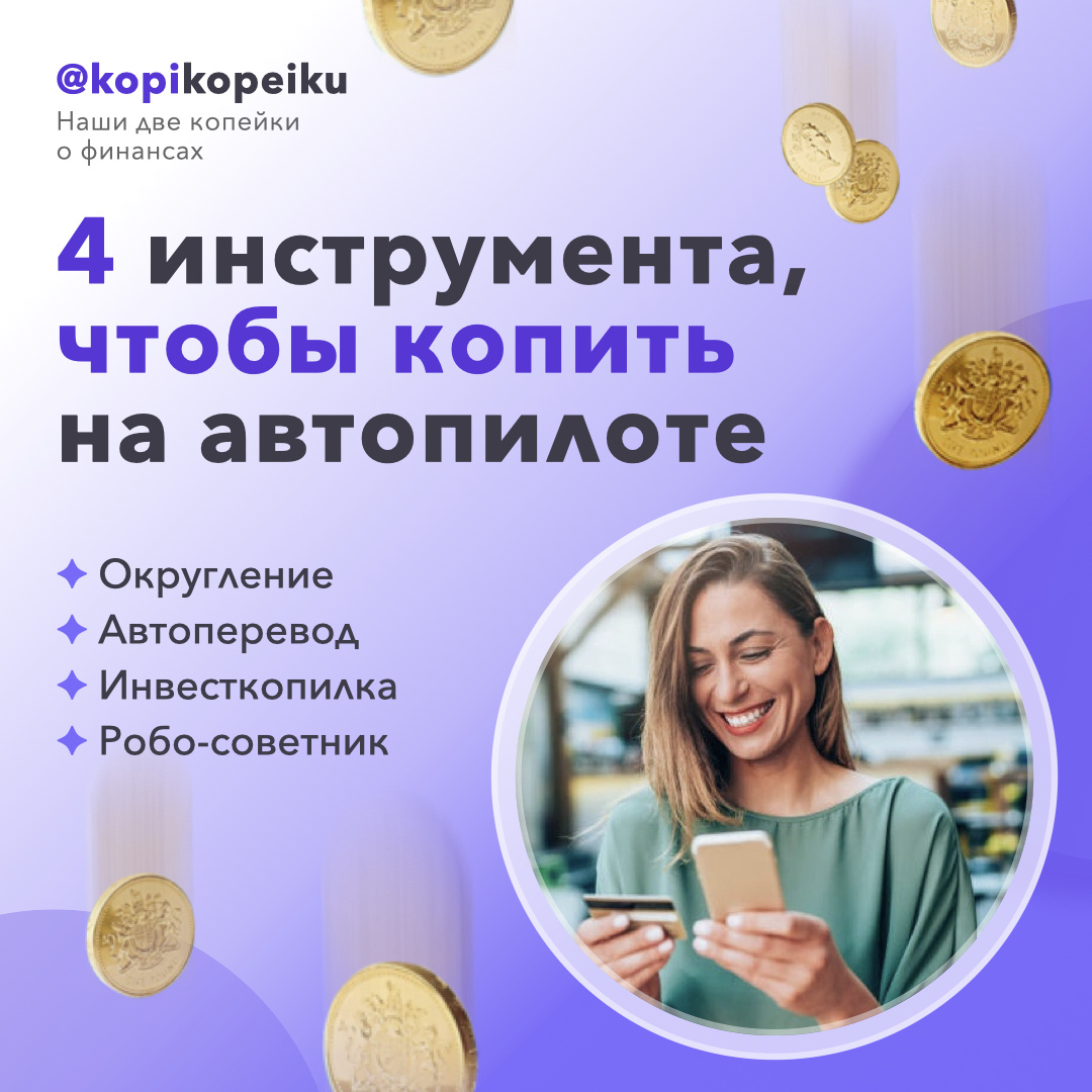 Как копить, прилагая минимум усилий? 📈 Мы догадываемся, что у вас не всегда получается откладывать деньги. А еще вы не готовы разбираться в активах и следить за их стоимостью. Есть хорошая новость! Инвестировать можно без усилий. Деньги откладываются сами, инвестируются автоматически, а ваш капитал растёт без вашего участия. 🧙♀️ И это не магия, а подход к инвестициям, который требует минимального участия со стороны инвестора. 🛠 Ловите 4 инструмента, которые вам помогут начать копить и инвестировать без усилий. Это самый простой способ заставить деньги, работать, пока вы их тратите. Суть в том, что любая покупка округляется до целой суммы, а разница направляется на накопительный или брокерский счет. Полученный кэшбэк автоматически переводится в накопления. Некоторый банки позволяют подключить к накоплениям счет близкого. Это означает, что кэшбэк и округление будут происходить на счетах близих, а затем начисляться на ваш. Накопления растут из небольших и невидимых для глаза сумм, к
