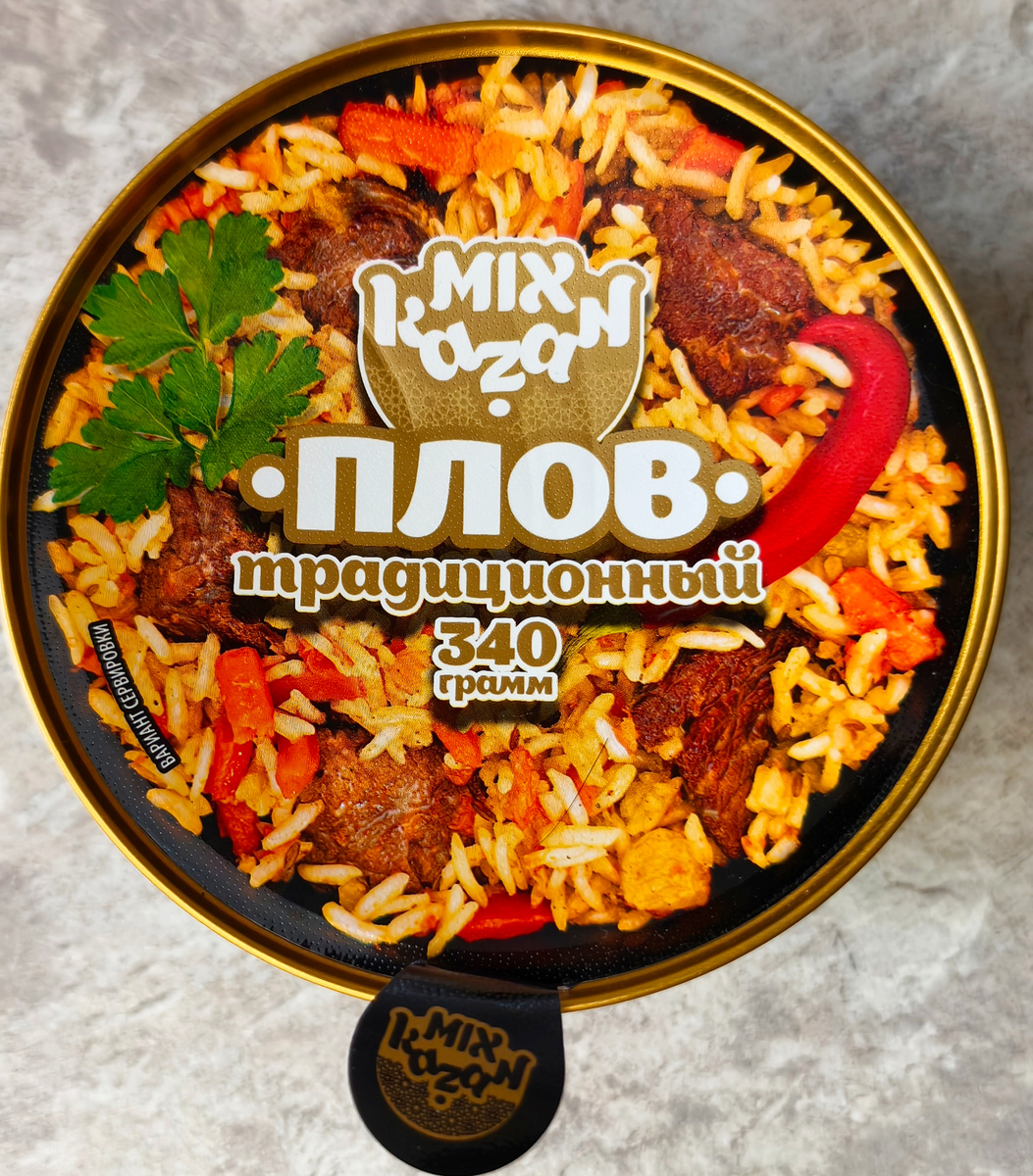 Всем привет! Искал я на Озоне что бы интересненького попробовать и наткнулся на такой пловец. Заинтересовало то, что все отзывы на него были положительные. Цена не маленькая, 306 рублей за банку, но я все равно решил взять проверить. Ну, вообще, кажется дороговато за порцию плова или нет? Ну и извечный вопрос: грамм или граммов?) Первое что бросилось в глаза это нестандартная баночка. Она сделана в виде тарелки что-ли. Наверное на эту банку ушла половина стоимости плова). В общем впервые такую вижу. Изготовитель: ИП Сулейманов Тимур Фанисович, Самарская обл. г. Тольятти. Кто-то варит плов у себя на заднем дворе и продает). Надеюсь в казане на костре. В составе говядина, рис, масло, морковь, лук, соль, зира, вода. В принципе нормальный состав. Ничего лишнего. Хотя, когда я делаю плов добавляю больше различных специй. Срок годности один год. Этой банке чуть больше двух месяцев. Мааса 340 граммов. Одна нормальная порция. Халяль, все дела. Можно есть из этой банки-тарелки, если п