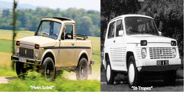 К сожалению, в наше время российские машины не впечатляют своими моделями. Просто берут готовые модели, что-то добавляют в характеристики, а порой совсем не изменяют их и продают. Во время советского союза все было наоборот - автопром страны производил такие хорошие машины, что ими восхищался весь мир. Западная Европа даже взяла “Ниву” как прототип для своих машин. Давайте взглянем как отечественную модель переделали европейцы. Первой страной, которая изменила “Нива” является Франция. Они создали кабриолет на базе русской машины и назвали ее “Plein Soleil”, что в переводе на русский означает “полное солнце”. Инженеры просто отрезали половину задней части автомобиля и поставив вместо нее каркасные детали. У машины было два варианта внешнего вида: можно было сложить натянутый тент на каркас, что позволяло превратить автомобиль в летний вариант. Всего было выпущено порядка одной тысячи моделей этого кабриолета. Следующий автомобиль французы преобразили по-другому. В Лада Нива “St-Tropez”