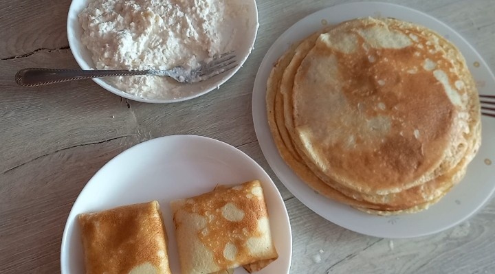 Сегодня решила добавить в тесто яблоки. Я же все в поисках полезных рецептов. К сожалению без муки обычной никак 🤷♀️ Но остальное потихоньку заменяю. Вот рецепт: 🥞 3 яйца 🥞 2 яблока 🥞 стакан молока 🥞 2-3 ст/л топленого масла🥞 1,5 стакана муки 🥞 стакан горячей воды Все смешивала в блендере. Горячая вода в конце. В следующий раз вместо молока положу воду 🙂 А как вы готовите блины? Делитесь рецептами ⤵️