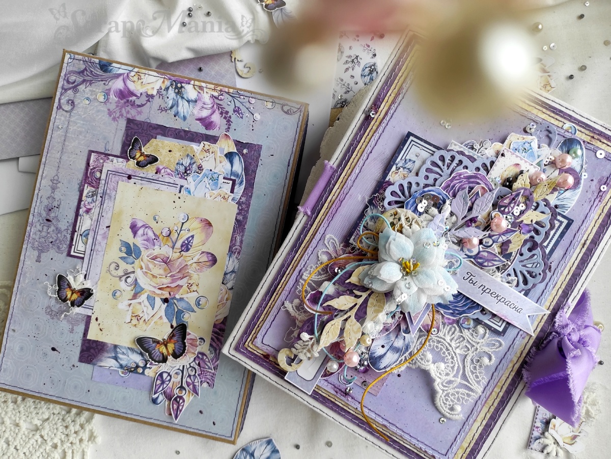 Всем - здравствуйте! Сегодня с вами Галина Хисамова. Открытка в коробке цвета лавандового счастья. Едва приоткрываешь крышку — и взгляд встречает всплеск красок! Внутри притаилась открытка-сюрприз: объёмный цветок,тонкие линии перьев и веточек с бусинами, блеск пайеток создающими эффект богатства и утонченности. Обязательные элемент для любой открытки поздравительная надпись. Для неё выбрала «Ты прекрасна». Весь этот набор создан из восхитительной коллекции "Балетный класс" и прекрасно подходит для поздравления девушке. В открытке тонкое кружево, что придает ему особую элегантность и роскошь. Каждый элемент — как признание в любви: на завязках шелковая лента — переливается и вторит общей палитре открытки. А когда открытка раскрывается, внутри — гирлянда из бус и кармашек для подарка. Представьте восторг именинницы, когда вместо обычной карточки её ждёт целая Вселенная цвета, которая способна передать всю глубину чувств дарителя и оставить незабываемые впечатления у получателя. Иногда
