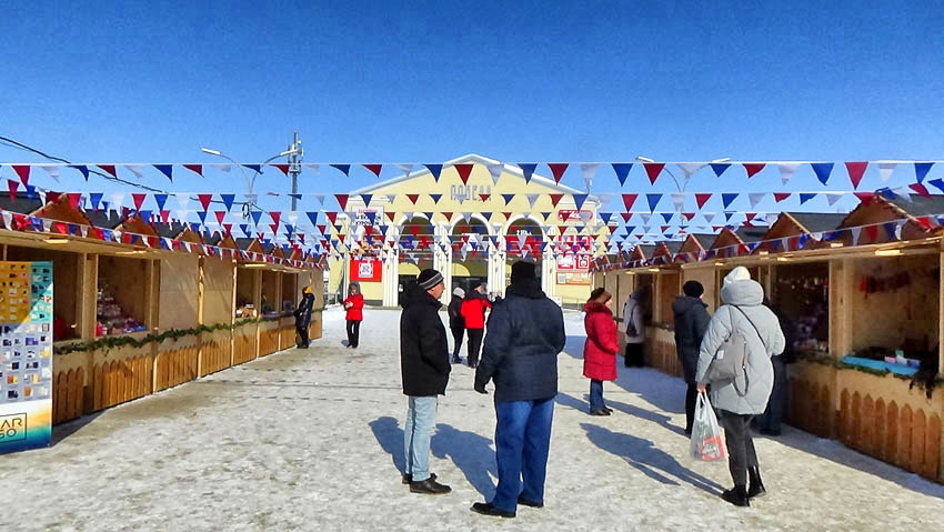 В будни удовольствие торговать под декоративной крышей и со светом стоит 200 рублей в сутки, а в выходные - 300 рублей. Пока на прилавках "избушек" выставлены на продажу духи, кошельки, платки, игрушки, сувениры. Можно ли на этих местах продавать еду, нигде не написано. Плату собирают контролеры внешне непонятного "происхождения".