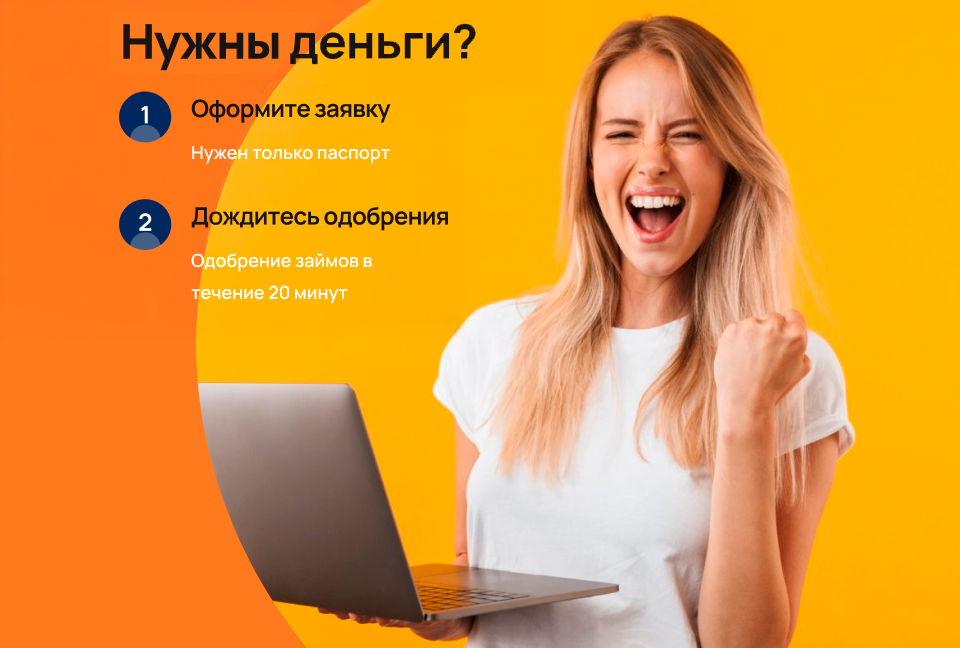 Быстро Весь процесс - от оформления заявки до получения денег занимает около 20 минут Удобно Можно получить займ у нас на сайте, в мобильном приложении или в офисе Минимум документов Для оформления займа потребуется только паспорт Минимум документов Для оформления займа потребуется только паспорт