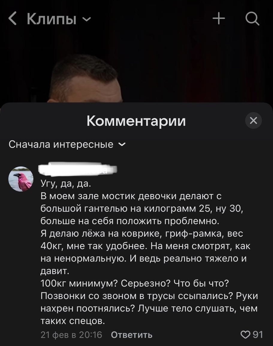 Несколько дней назад увидела в соцсетях, как объектом жарких споров стали базовые силовые упражнения: румынская тяга, тяга сумо, присед в Смите, и особенно👆🏻- ягодичный мостик! Небольшое предисловие - на видео два тренера https://vk.com/clip-226848387_456239281?c=1 обсуждают вышесказанные упражнения, говоря о том, что их нужно выполнять с тяжёлыми весами, а именно: ягодичный мост должен быть в 1,5-2 раза тяжелее собственного веса, румынская тяга 70-80 кг! …. И это ПРАВДА! Именно такими должны быть ваши рабочие веса, при условии, что вы рассчитываете на результат! Но никто не заставляет вас сразу, с первых тренировок брать большой вес! К ним нужно подходить поэтапно, желательно под контролем опытного тренера. А теперь самое интересное! Прочитав комментарии под видео, понимаю, что большинство вообще не понимают КАК работают данные упражнения, на что они воздействуют, и какую пользу несут. Окончательным бредом стали комментарии по типу «позвоночник в трусы высыпется» и «выпадет ма