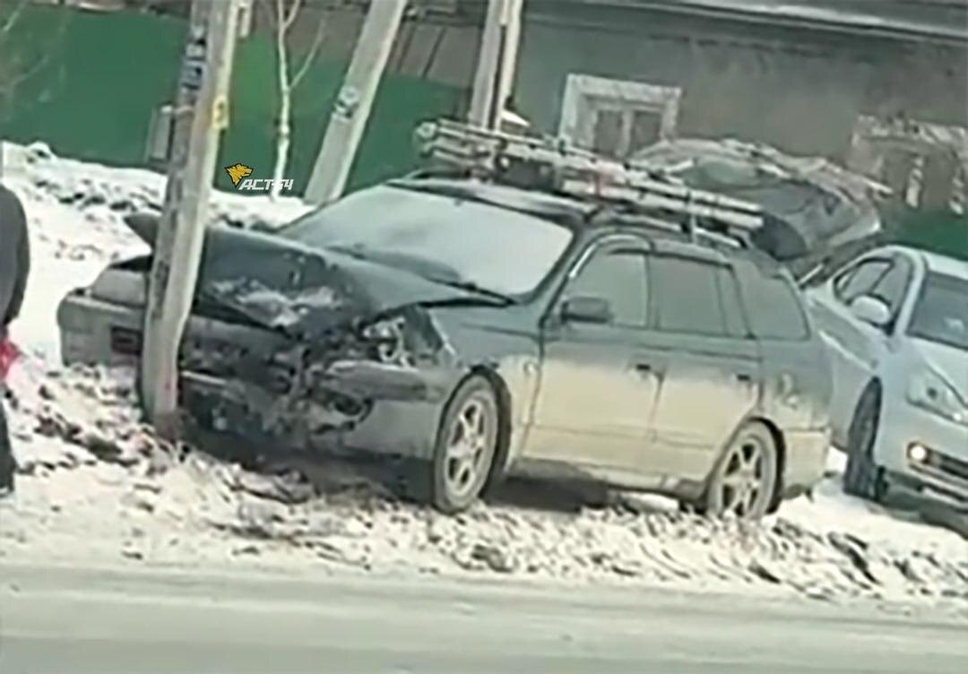 Две иномарки вылетели в столбы после ДТП в Новосибирске