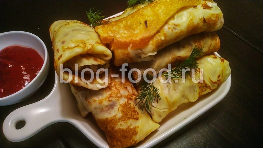Всем привет. Да-да, форшмак — это не только селёдка с лучком, яблоком, хлебом и всякими сопутствующими прибамбасами. Изначально это была горячая закуска из той же сельди, но не обязательно. Мясо и птица тоже шли в дело как в паре с рыбой, так и по отдельности, а уж всякие добавки вообще особо никак не регламентировались. Сегодня сделаем куриный форшмак с яйцом, корнишонами и сметаной и начиним этим великолепием блинчики. Будет вкусно! Продуктовый набор: Два яйца отвариваем вкрутую, очищаем, режем кубиком. Лук и огурцы режем помельче, укроп рубим, оставив пару веточек на подачу. С сотейнике растапливаем сливочное масло, вливаем молоко, 200 мл воды, слегка прогреваем, снимаем с огня, добавляем муку, яйцо, сахар, щепотку соли и тщательно размешиваем. Печём блины как обычно, откладываем в сторону. В сковороде обжариваем лук в течение пары минут. Добавляем фарш, перемешиваем, жарим три минуты. Складываем фарш, яйца, корнишоны, нарубленный укроп, сметану, соль, перец по вкусу, перемешиваем.