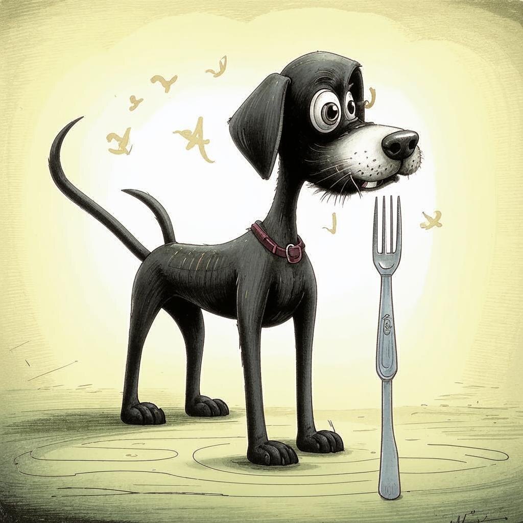 В одном доме жил пёс по имени Барни. Он был любопытен и всегда искал новые приключения. Однажды, бродя по кухне, он заметил блестящий предмет, упавший со стола — вилку. Барни аккуратно подхватил её зубами, удивлённый её формой. «Интересно, для чего это?» — подумал он. Сначала он решил, что это игрушка, и стал подбрасывать вилку лапой. Но металл звенел о пол, а острые зубцы царапали паркет. Тогда Барни попробовал использовать вилку, чтобы подцепить еду из миски. Увы — куски мяса выскальзывали, а сам предмет лишь мешал ему наслаждаться обедом. Расстроенный, он улёгся на коврик, положив вилку рядом. Хозяйка, увидев это, улыбнулась: «Барни, вилка создана для рук, чтобы аккуратно разделять пищу. Но твои зубы и язык куда лучше справляются с твоей трапезой. Зачем усложнять то, что и так совершенно?» Пёс, словно поняв её, махнул хвостом. Он оставил вилку на полу и с радостью погрузил морду в миску, наслаждаясь вкусом без лишних усилий. С тех пор Барни больше не гнался за непривычными вещами,