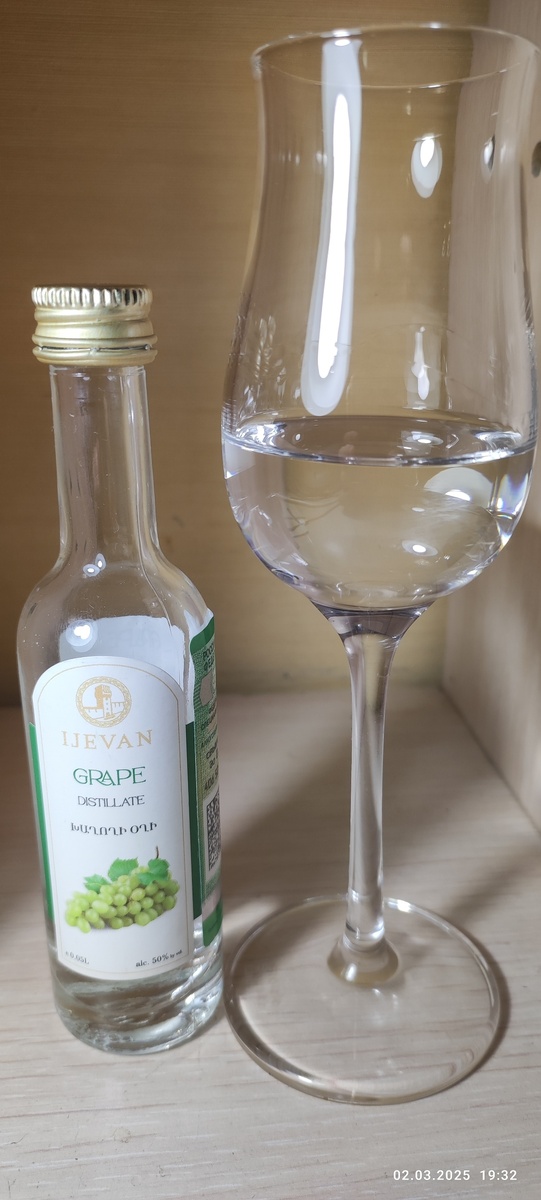 С подгоном Бориса имею удовольствие продолжать знакомство и закрывать гештальт по иджевановским дистиллятам. Сегодня, лишь третья, но по идее, самая простая из них - виноградовка. Изготовлена из винограда и воды. Крепость стандартная, 50%. Дата розлива 10.24