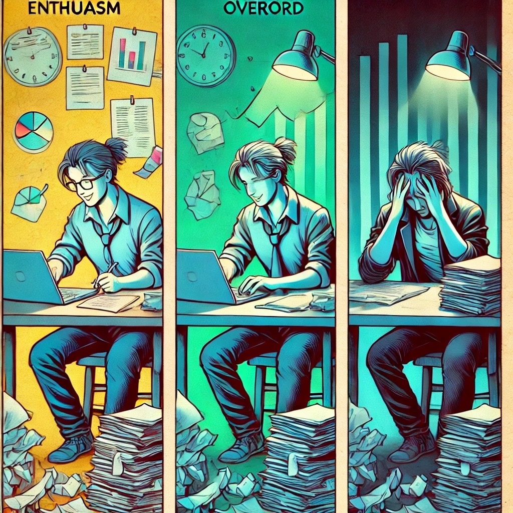 Эмоциональное выгорание — это состояние физического, умственного и эмоционального истощения, вызванное длительным стрессом. Оно чаще всего встречается у людей, работающих с высокой нагрузкой, испытывающих постоянное давление или нехватку поддержки. Этот синдром впервые описал американский психотерапевт Герберт Фрейденбергер в 1974 году, выделив несколько стадий его развития. Стадии выгорания по Фрейденбергеру Фрейденбергер выделил 12 стадий эмоционального выгорания, которые можно условно разделить на три основных этапа: 1. Начальная стадия (энтузиазм и перегрузка) • Человек испытывает сильную мотивацию и стремится к высоким результатам. • Берёт на себя слишком много обязанностей, игнорируя усталость. • Начинает жертвовать личным временем ради работы. 2. Стадия истощения и разочарования • Появляется хроническая усталость, раздражительность, апатия. • Человек чувствует, что его старания не оцениваются по достоинству. • Повышается тревожность, ухудшается сон. • Отдых уже не при