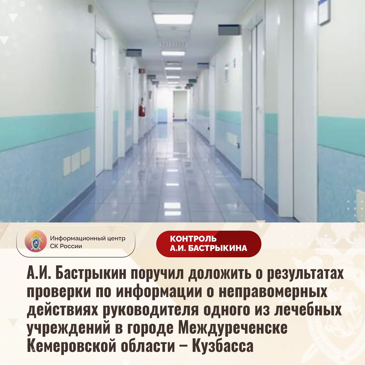 А.И. Бастрыкин поручил доложить о результатах проверки по информации о неправомерных действиях руководителя одного из лечебных учреждений в городе Междуреченске Кемеровской области – Кузбасса