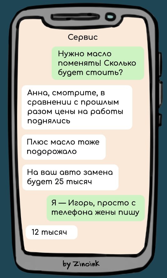Ездить на четырех колесах лучше, чем ходить на своих двоих – это вам скажет любой владелец авто! До первой поломки машины... Как пережить ремонт ласточки – поговорим в сегодняшней статье. Я собрал 7 смешных переписок, в которых водители пытаются найти хороший сервис, но у них не получается. Уверен, они тебе понравятся. Приятного чтения и отличного настроения! В романтических фильмах женщины вообще не тратятся на транспорт. Они изящно оголяют щиколотку, и перед ними останавливается любое авто! А как с расходами на поездки обходится в реальной жизни? Узнаем прямо сейчас! Если в объявлении о продаже авто стоит очень привлекательная цена, непривлекательной может оказаться сам вид машины! В тему – следующая переписка. Салон автомобиля может многое рассказать о его владельце! Детское кресло – о наличие ребенка, порядок – о педантичности владельца, шикарные колонки – о широких музыкальных предпочтениях водителя. А о чем расскажет машина героя нашей следующей переписки? Каждый уважающий себя в