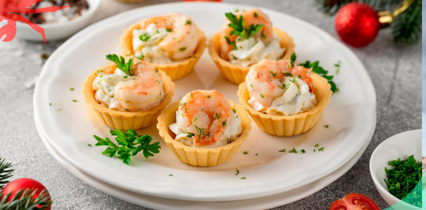Рецепт: Тарталетки с творожным сыром, креветками и чесноком