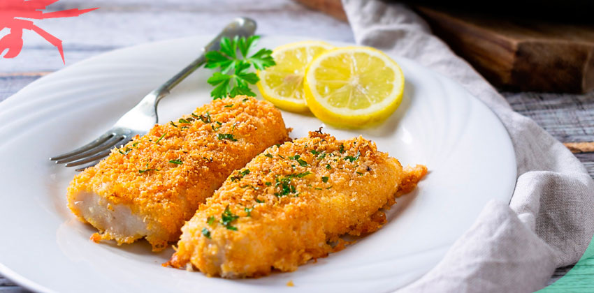 Ингредиенты: Филе нарезаем порционными кусками. Слегка присаливаем и перчим. Берем миску, взбиваем яйца. В другой миске смешиваем мелко натёртый пармезан с миндальной крошкой, луком, чесноком, паприкой и хлопьями перца. Каждый кусочек рыбы опускаем в яйца и обваливаем в панировке. Выкладываем на противень, застеленный пергаментом и сбрызнутый маслом. Отправляем в разогретую до 200 °С духовку примерно на 10–15 минут. Источник: https://wildcrab.ru/news?id=2665
