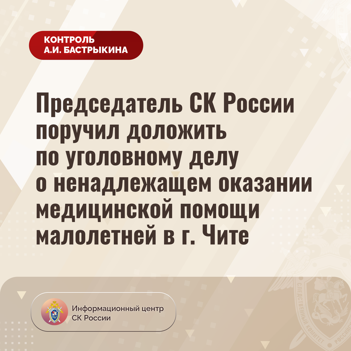Председатель СК России поручил доложить по уголовному делу о ненадлежащем оказании медицинской помощи малолетней в г. Чите