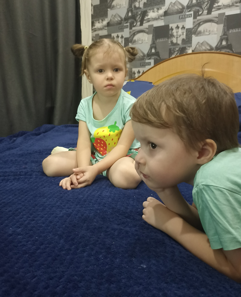 Всем привет! Сегодня планировался максимально спокойный выходной, и у нас получилось, местами и правда было релаксно. Вообще, несколько дней назад на воскресенье мы планировали посещение развлекательного центра, дети просились. Но подумали, что сейчас многие болеют, и это не самое лучшее решение. Тем более, когда до утренника осталось два дня, да и у меня впереди отчетная неделя. Рисковать не стали. С готовкой я расправилась ещё вчера, поэтому в релаксном плане на сегодня значилось рисование, домашнее задание от логопеда, подготовка одежды к утреннику и к предстоящей неделе, купание и тихие игры перед сном. Уже на рисовании всë посыпалось. Посадила детей рисовать, дала им цветные карандаши. Заодно попробовали сделать домашнее задание. Юле нужно было нарисовать арбуз, а Сëме автобус (проходим буквы "а" и "у"). Попробовали вместе, у Юли контур неплохо получился, но раскрашивать не захотела, оставили на потом. А у Сëмки непонятное что-то вышло, ещё и чёрного цвета, тоже пока оставили эт