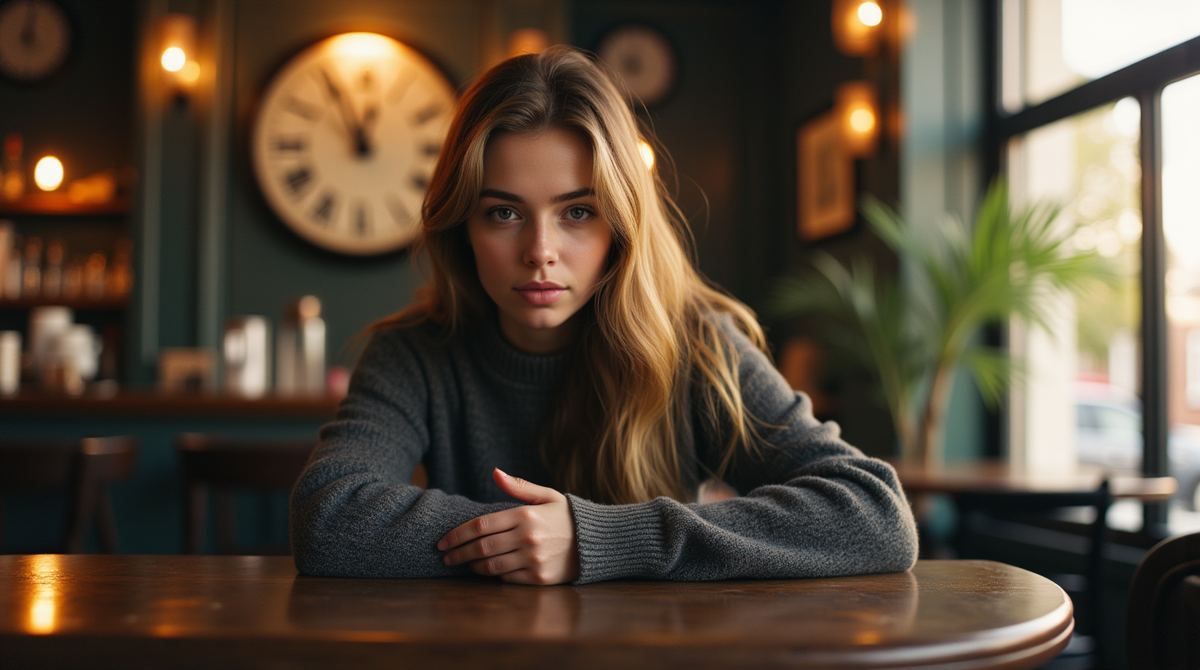 Старинные часы на стене кафе отсчитывали минуты — медленно, как капли густого экспрессо. Лариса облокотилась на высокий барный стол у панорамного окна, наблюдая за происходящим. Утренний свет разливался мягкими акварельными красками, подсвечивая пряди её светло-русых волос, собранных в строгую причёску.