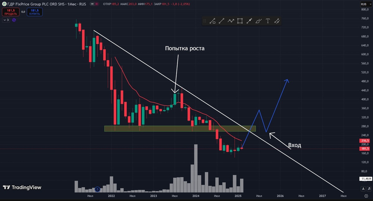 Сейчас лучше обратить внимание на другие акции, которые уже встали в растущую тенденцию на месячном тайминге.