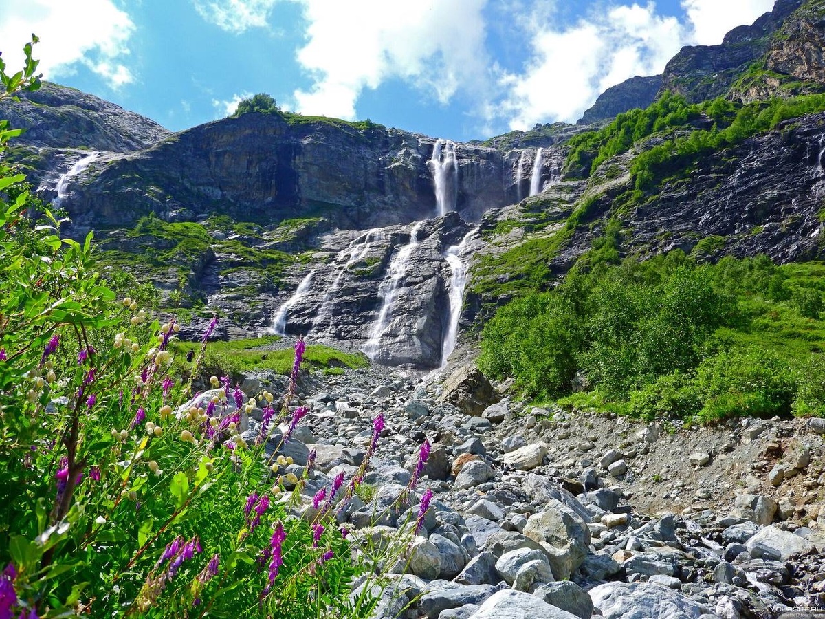 Любой водопад завораживает, а одним из самых впечатляющих на Кавказе является каскад Софийских водопадов в Архызе🏔️ Мощные потоки воды падают с высоты 90 м, образуя каскад сразу из девяти водопадов! 🧭 Как проехать? От курорта до Софийских водопадов около 15 км. Добраться до них можно пешком, на внедорожниках или лошадях. Пеший маршрут начинается за мостом через реку Псыш, а потом идёт по берегу реки София. 📍43.443114, 41.281764