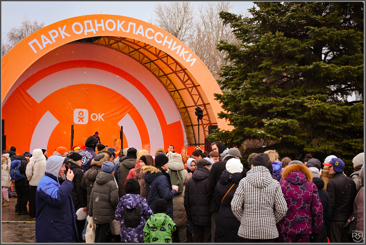 Обычно сказки заканчиваются словами "Я там был, мёд, пиво пил, да усы лишь обмочил". Не поверите, но я даже усы не обмочил. Не потому, что у меня их нет, а потому что ни одного блина не съел, ни одной баранки не сгрыз. Сапожник без сапог, "одноклассник" без блинов "одноклассниц". Однако это не повод не показать вам, как проходила ОКМасленица. Поехали посмотрим! В парк "Одноклассники", в обычной жизни именуемый Екатерининским, прибыл я в самом начале гулянки. Честной люд пил чай с баранками, радовался сахарным петушкам и сплавлял детей на различные забавы, коими их отвлекали от родителей. Или наоборот… тут я запутался. Главное – настроение было отличное у всех. Или почти у всех, но у кого оно было не отличным, начали поправлять блинами, которые пекли наши блогеры с "Одноклассников". За блинами выстроились такие очереди, что я даже не стал пробовать пробиться. А там было что посмотреть поесть. Где-то там, в глубине сибирских руд народных масс, четыре блогера с платформы Одноклассники р