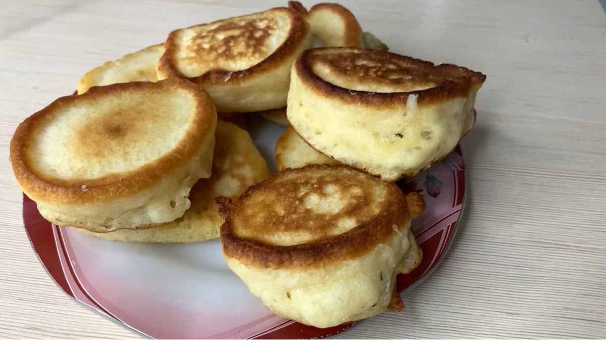 Нам понадобится: Яйцо 1шт Щепотка соли Сахар 2ст л Кефир тёплый 250мл (можно разогреть в микроволновке) Мука 240 г Сода 0,5ч л Масло растительное 2ст л 2 Вливаем 250мл теплого кефира (можно подогреть в микроволновой печи) и все перемешиваем 3 Всыпаем 240гр муки и хорошо перемешиваем 4 Добавляем 0,5чл соды и 2ст л растительного масла. Хорошо перемешиваем и даем постоять 10мин 5 Обжариваем на слабом огне, как перевернули накрыли крышкой