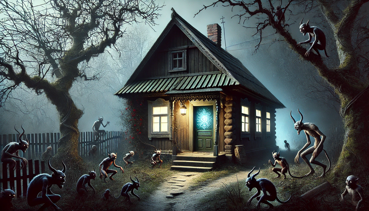 В славянских землях, где народные поверья и обряды занимали важное место в жизни, часто можно было встретить расписные двери и окна, украшенные символическими крестами и знаками. Во-первых, крестьяне часто вешали подковы, в качестве оберега от злых духов и различного рода бед, вроде: зависти, неудачи, клеветы и прочего. Во-вторых, в некоторых регионах Украины и Беларуси существовала традиция рисовать на входах в дом изображения святого Георгия Победоносца – защитника, способного победить даже самого коварного демона. "Амулеты" несли в себе не только мощный магический заряд, способный защитить дом от ночных нападений нечисти, но и эстетическую ценность.